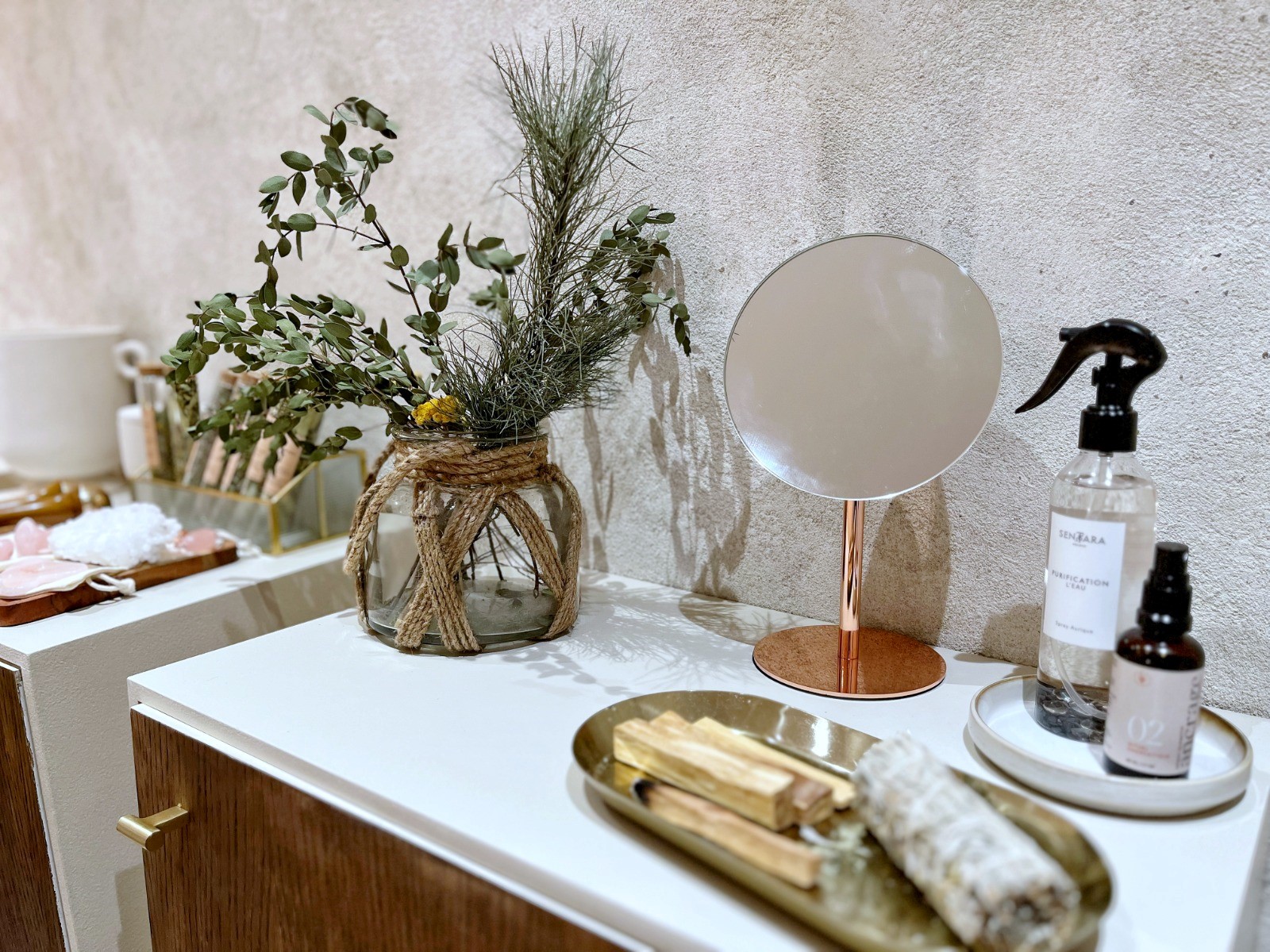 Un rituel de massage visage réalisé avec des huiles bio, comprenant des pochons chauds aux plantes accompagné d’un massage aux différentes pierres précieuses « Gua Sha « . Il s’adapte à tous types de peaux.